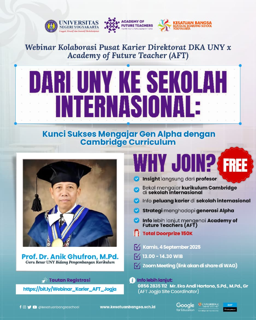 Mengawali tahun akademik 2025-2026 Sekolah Kesatuan Bangsa kembali membuka layanan pelaksanaan ujian SAT. Hingga saat ini, Kesatuan Bangsa adalah satu-satunya tempat yang secara resmi mengantongi izin untuk pelaksanaan SAT di Yogyakarta dan sekitarnya. Tes SAT pertama untuk tahun akademik ini dilaksanakan 23 Agustus 2025 lalu dan diikuti oleh 16 siswa dari seantero Yogyakarta. Tes SAT […]